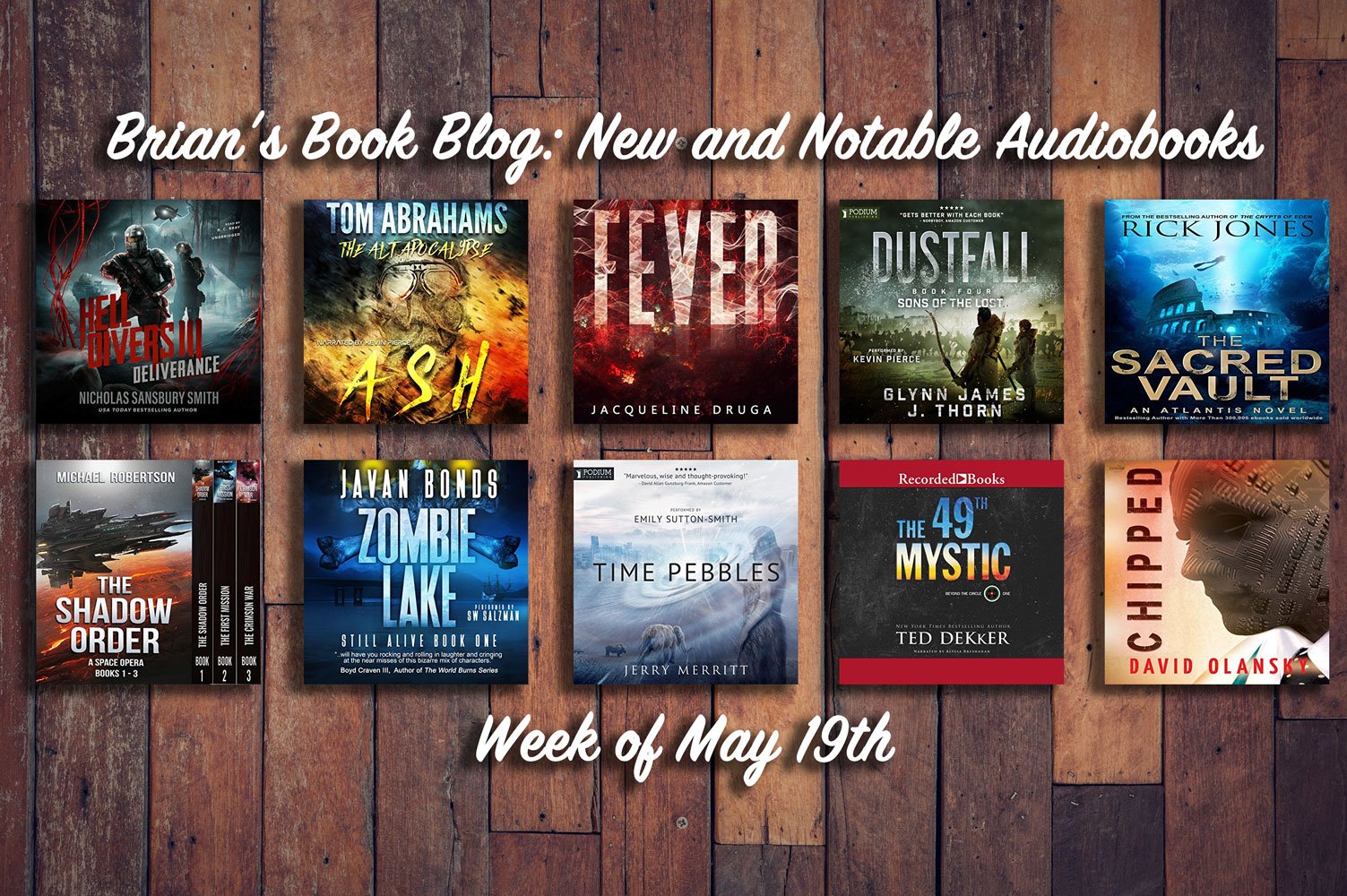 Here are this week’s (Week of May 19th) new and notable audiobooks featuring Post-Apocalyptic, Sci-Fi, Thrillers, and more from Steve’s Book Blog.