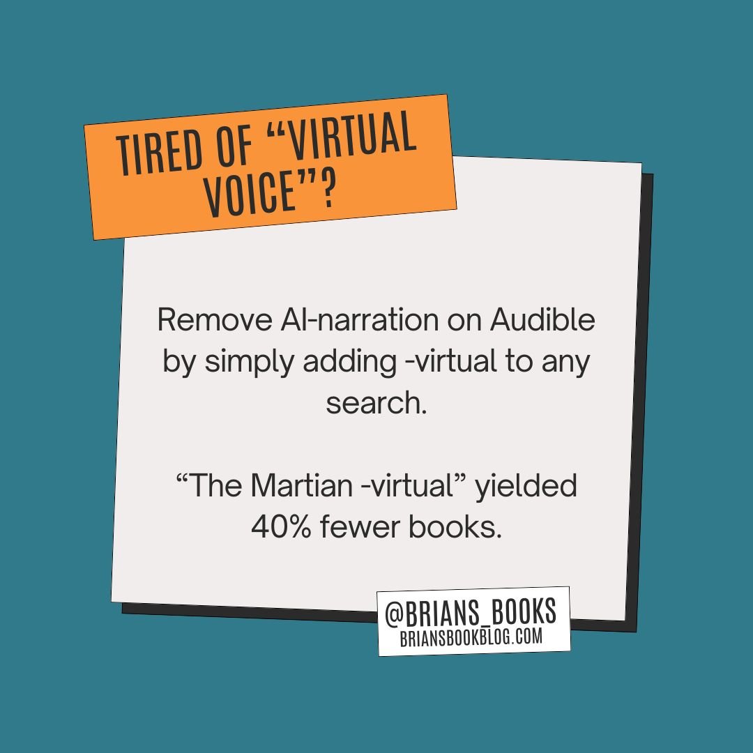 Add -virtual to any Audible search to filter out AI narration.